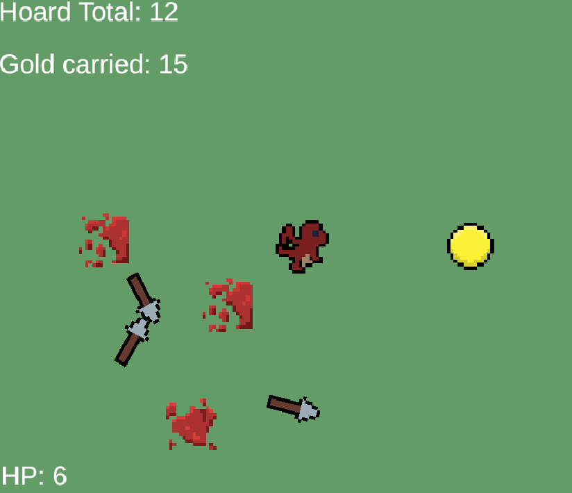 Little Dragon who loves gold. Run around the small map to find the gold pieces before they disappear and bring them back to your lair to hoard them. Avoid the ballistae from the villagers trying to shoot you down and stop you.